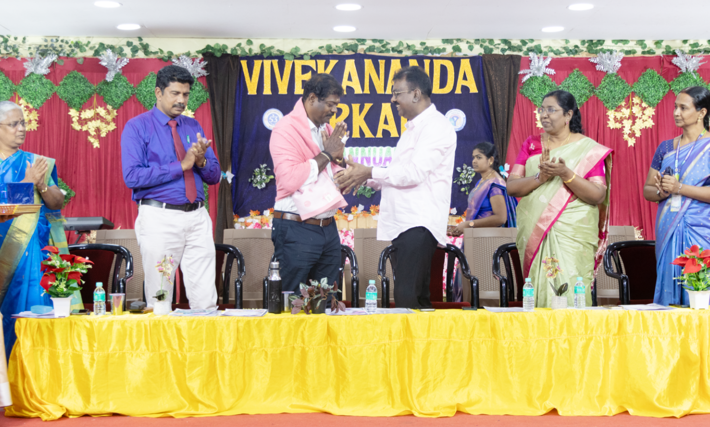The Chief Guest was formally honoured by Mr. K. V. Radhakrishnan Correspondent of the Vivekananda & Good Samaritan Group of Educational Institutions. This was followed by the Prize Distribution Ceremony where students from Standards IX X XI and XII were recognised for their outstanding academic performance. Staff Awards for 100% results centum achievements and long-serving staff members were also presented in appreciation of their dedicated service.