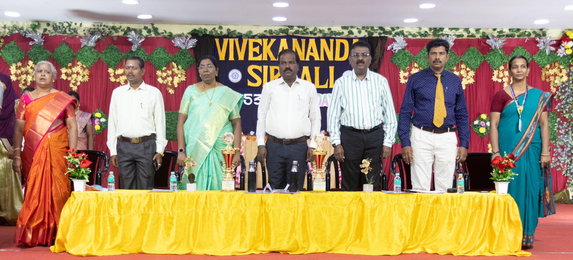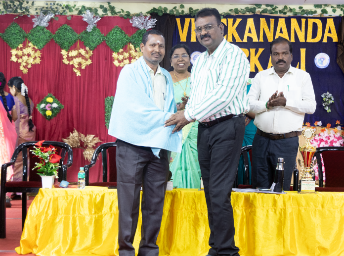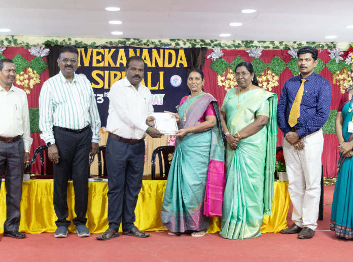 The occasion was honoured by the presence of the Chief Guest Mr. K. V. Radhakrishnan Correspondent of the Vivekananda & Good Samaritan Group of Educational Institutions Sirkali. The Prize Distribution Ceremony recognised the academic achievements of students from Standards IX X XI and XII. Teachers were also appreciated for achieving 100% results producing centum achievers and for their long-standing dedicated service through service awards.